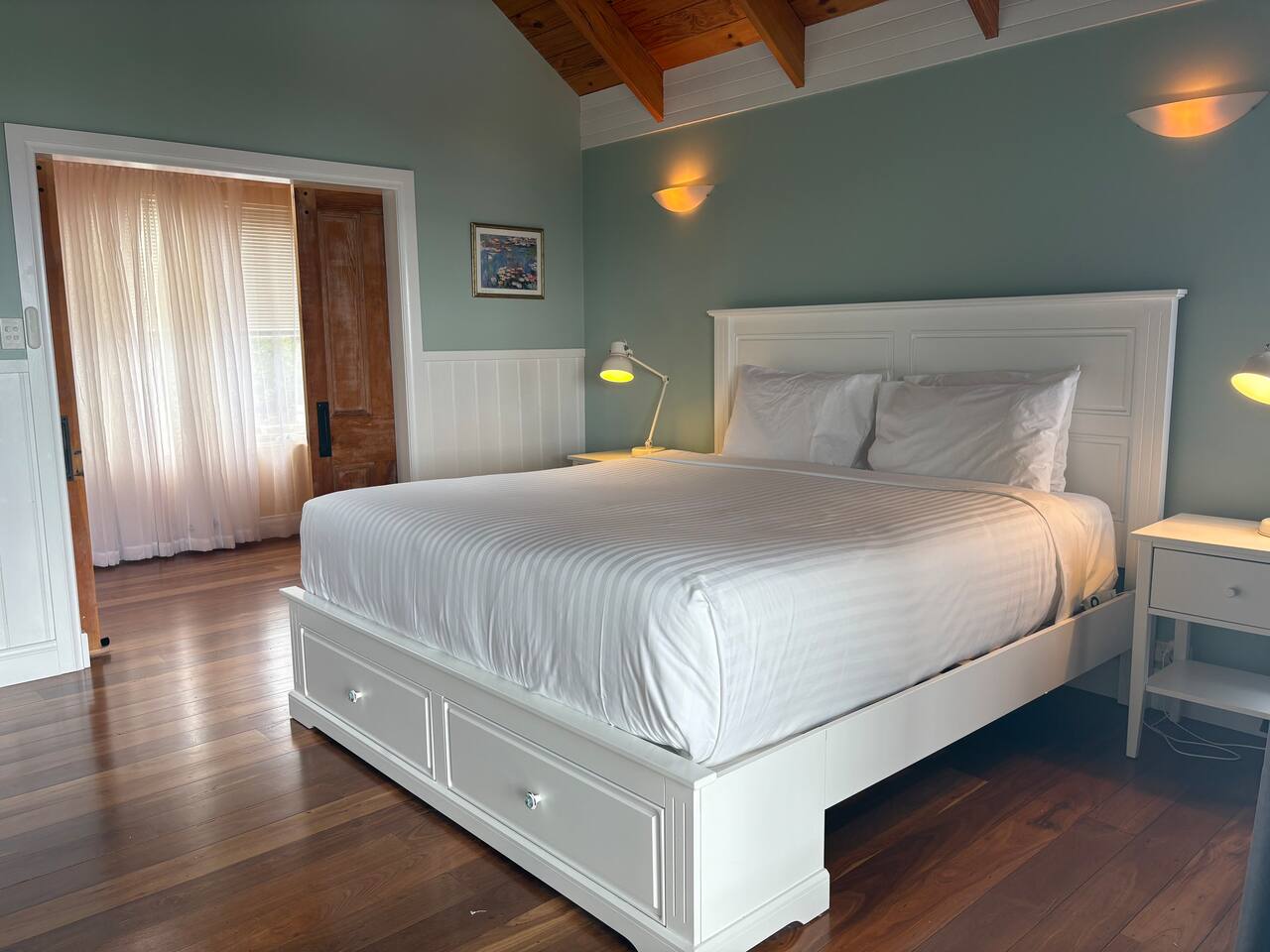 Bedroom One: King bedroom with private deck and harbour views.